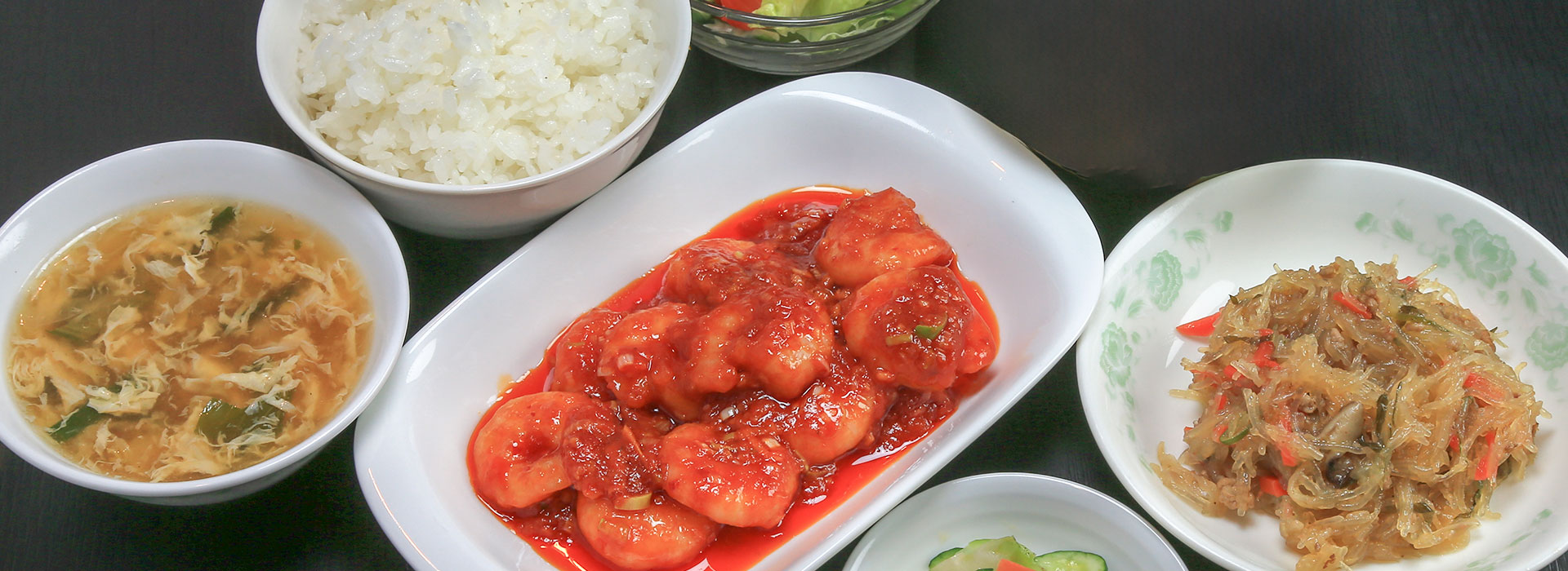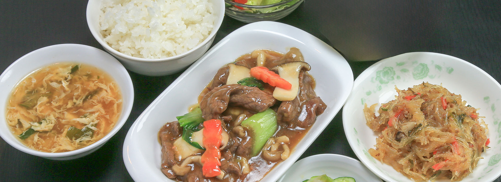 主菜は・鶏肉の唐揚げ薬味ソース・野菜と豚肉の細切り炒め・マーボー豆腐・海老のチリソース・牛肉のカキ油炒め・酢豚・鶏肉のピリ辛炒めからお選びいただきます。
