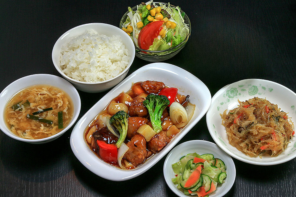 ランチメニュー ランチメニュー ランチメニュー Aランチ 油淋鶏 (鶏肉の唐揚げ薬味ソース) 1,080円(税込) Bランチ 炒肉絲 (野菜と豚肉の細切り炒め) 1,080円(税込) Cランチ 麻婆豆腐 (マーボー豆腐) 1,080円(税込) 特ランチ 乾焼蝦仁 (海老のチリソース) 1,420円(税込) Sランチ 蠔油牛肉片 (牛肉のカキ油炒め) 1,420円(税込) ★主菜・小菜・香物・スープ・サラダ・ご飯 付き 特ランチ 乾焼蝦仁 (海老のチリソース) Sランチ 蠔油牛肉片 (牛肉のカキ油炒め) Aランチ 油淋鶏 (鶏肉の唐揚げ薬味ソース) Bランチ 炒肉絲 (野菜と豚肉の細切り炒め) Cランチ 麻婆豆腐 (マーボー豆腐) 鶏肉のピリ辛炒めランチ 酢豚ランチ 麺飯 什錦炒飯 (五目炒飯) 1,080円(税込) 中華丼 (五目うま煮あんかけご飯) 1,080円(税込) 什錦粥 (五目おかゆ) 980円(税込) 高菜麺 (高菜入りおそば) 880円(税込) 芹菜麺 (セロリーと豚肉のあんかけそば) 1,080円(税込) 叉焼麺 (広東式チャーシュー入りおそば) 1,200円(税込) 什錦窩麺 (海鮮と野菜の五目そば(塩味・醤油味)) 1,080円(税込) お子様麺 (お子さまそば) 420円(税込) 什錦炒麺 (五目焼きそば(あんかけ)) *かた焼きもあります 920円(税込) 広東炒麺 (牛肉とセロリーの焼きそば(あんかけ)) 1,200円(税込) 蟹肉焼売 (かにしゅうまい) 3個 390円(税込) 5個 650円(税込) 鍋貼児 (餃子) 5個 700円(税込) 春巻 (はるまき) 1本 140円(税込)